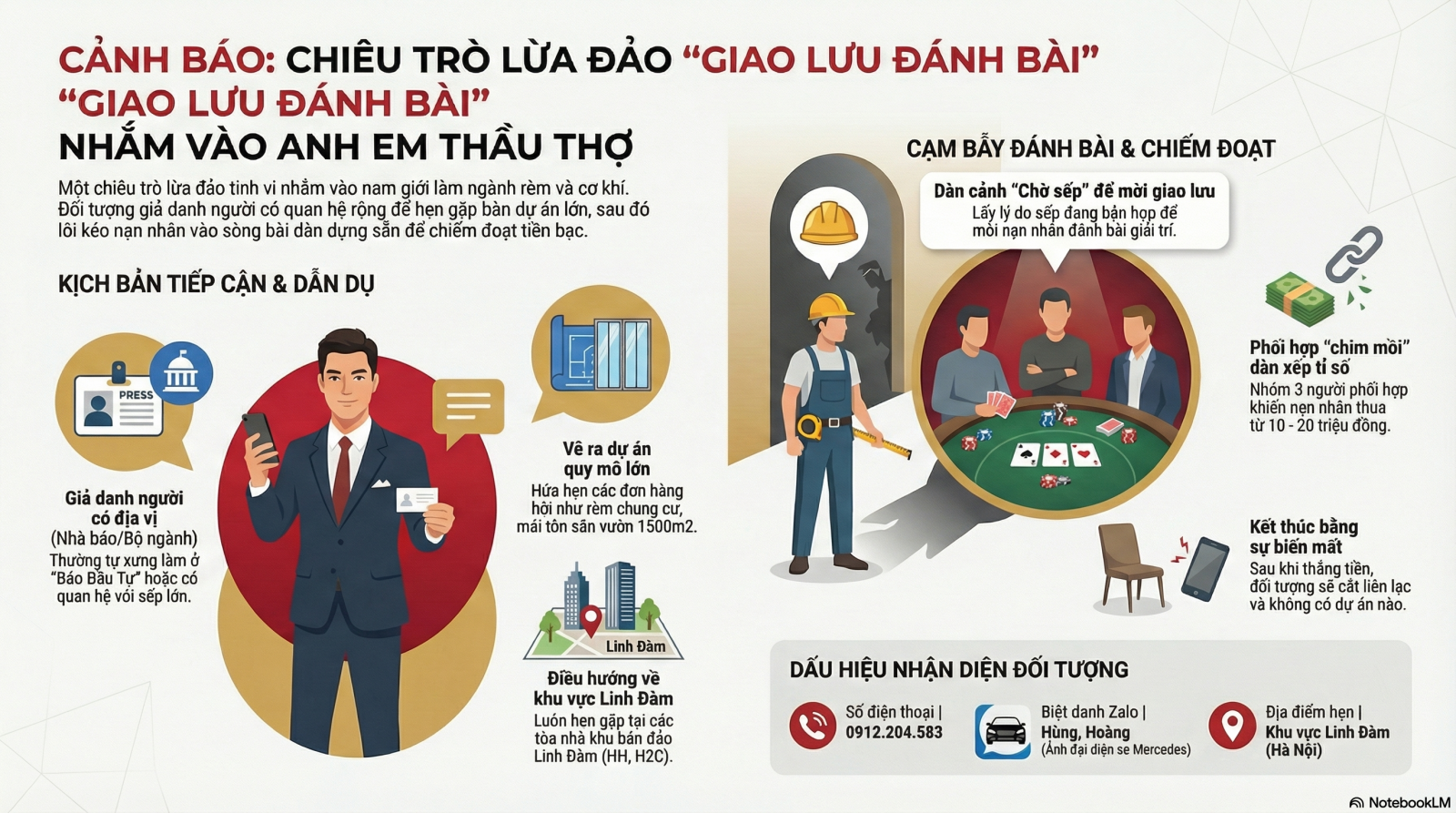 Một hình thức lừa đảo thợ thi công đang xuất hiện tại Hà Nội, đặc biệt khu vực Linh Đàm, khiến nhiều anh em làm nghề rèm cửa, mái bạt, cơ khí, nội thất mất từ 10–20 triệu đồng chỉ trong vài giờ.