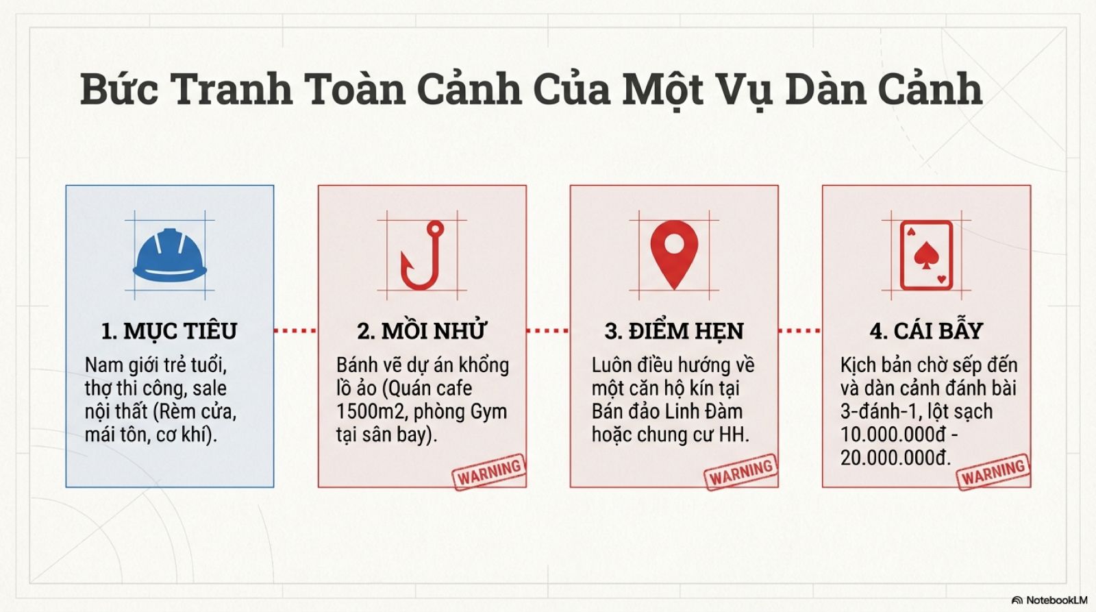 Để tránh bị dẫn dắt, cần hiểu rõ cách đối tượng này vận hành. Qua các phản ánh, video và tài liệu ghi âm, có thể thấy đây là kịch bản được chuẩn bị sẵn theo từng bước tâm lý.