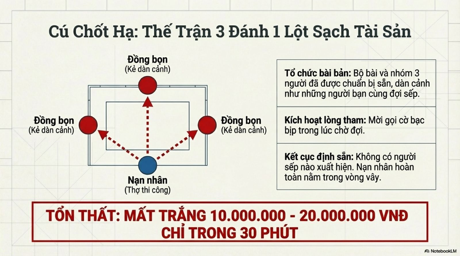 Kết quả là mất tiền trong thời gian ngắn, thường từ 10–20 triệu đồng.